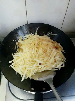 倒入土豆丝翻炒