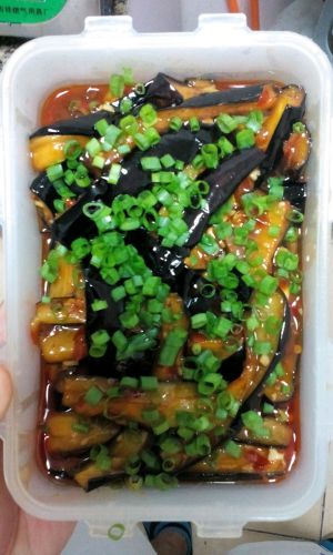 调汁:酱油一小勺,醋,糖,淀粉各小半勺调匀(可依个人口味加小半勺料酒)。如果腌茄子了,此步骤几乎不用再放盐,如果没腌要记得放。根据个人口味就行。