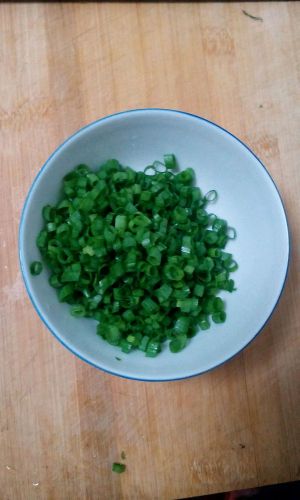 香葱下半部分切小段呛锅用,因为我不吃姜我就没放