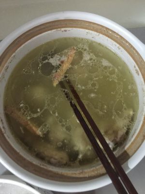 鸡肉捞起洗干净后,放入装好水的砂锅里 ,再加入老姜片