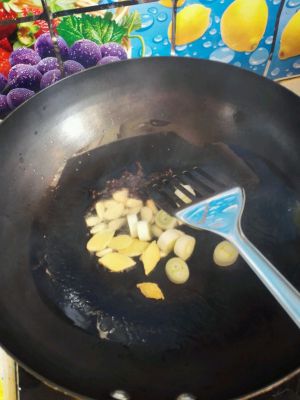 放入葱姜蒜爆香。