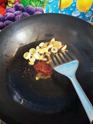 放入豆瓣酱,炒出红油。