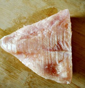 鸡小胸肉六块左右切丁,料酒适量腌制约10-15分钟。