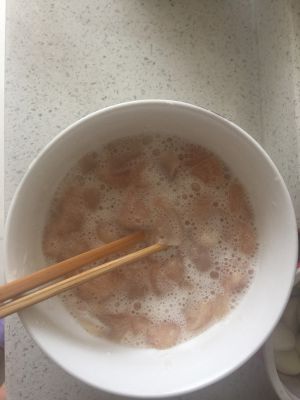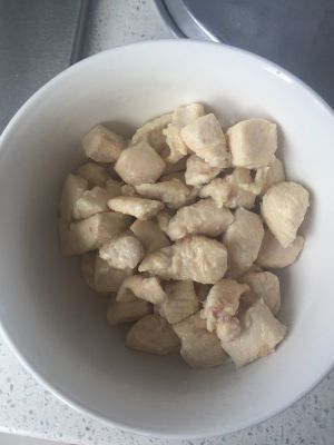 鸡丁切块,用玉米淀粉加鸡蛋清还有料酒腌制,今天家里没有料酒,我就放了点白酒!不过说真的,我觉得这样不如昨天做意大利面的鸡肉嫩,可以像淹意大利面鸡肉那样腌制