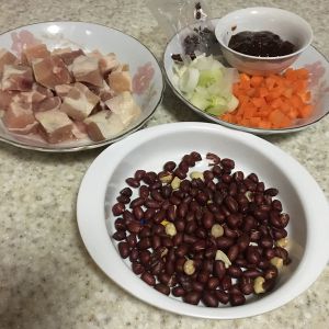 然后放后甜面酱 豆瓣酱 大葱 放二汤勺水,最后放花生米,炒至水干