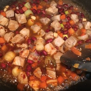 最后快出锅,倒入配好的料(糖、盐、醋、酱油、玉米淀粉)