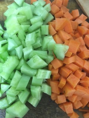 这时候切好胡萝卜黄瓜丁