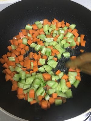 热油炒胡萝卜黄瓜丁,可加少许盐