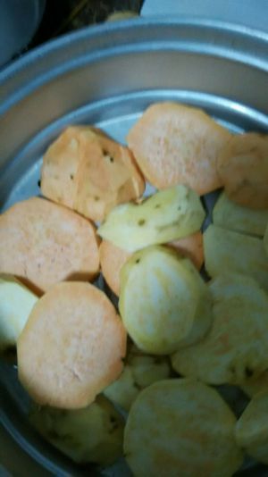 地瓜切大片摆在笼屉里