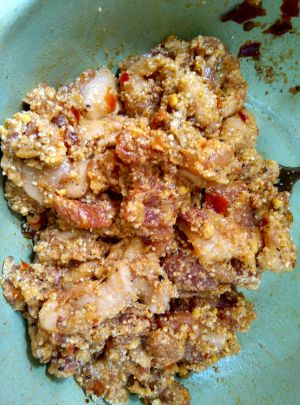 加盐 味精 十三香 胡椒粉 酱油 料酒等料腌制10分钟左右