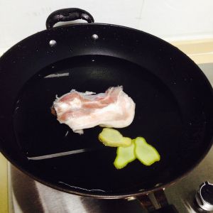 五花肉 加3片姜,一勺料酒,冷水下锅煮