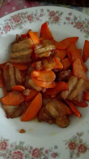 胡萝卜 红椒下锅煸炒至微软,保持锅中有油,下豆瓣酱爆炒,倒入火锅肉翻炒,放糖,可以加少于水,收汁起锅!