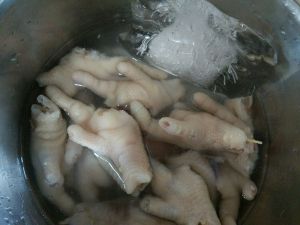 将鸡爪清洗干净后放入锅中加入没过鸡爪的冷水