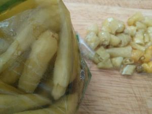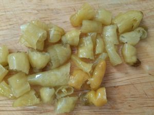 泡椒这是一包1000g的量,取150g,待用。 取150g是不含泡椒水的份量, 喜欢辣可以稍加多几个切开。