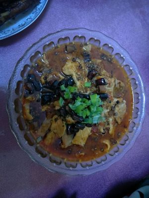 成品。。。黑乎乎的是最后的辣椒段跟花椒。。。一定要小火啊!!!