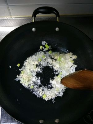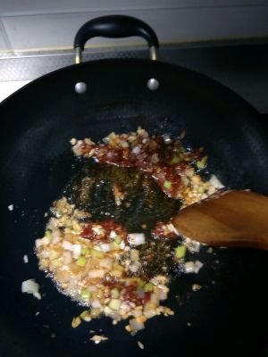 锅内倒油炒蒜末,葱末,到点酱油