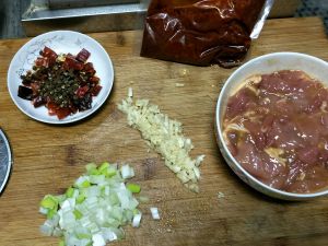 葱花,蒜末,郫县豆瓣酱,干辣椒和麻椒