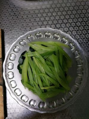 还烫了点芹菜,码好在碗里