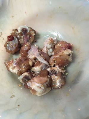 取出鸡块,抖去腌料