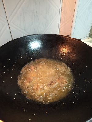 锅内留少量油下腌料煸炒(炒完弃去腌料)