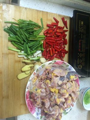 所有材料备好,鸡用盐和少许料酒腌制半小时以上