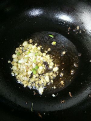 将刚刚爆出肉的油脂和锅内剩余油烧热加入一半的葱和全部的葱姜末 爆炒出香味