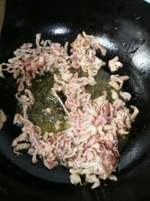 油温6成热左右下肉丝划散,变色捞出(这个过程很快,要是肉多油少的话就多炸几锅哈)
