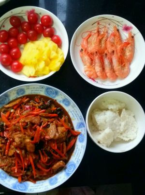 盛起,摆盘,美味的鱼香肉丝做好咯~ 非煮不可自动料理锅D308,是新型的智能双胆电饭煲,右锅在烹饪鱼香肉丝的同时,左锅可以同时煮米饭,还可以用配套的蒸笼蒸一盘杂菇沙巴鱼,一顿饭30分钟就做好咯~