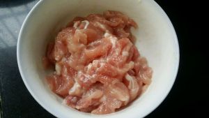 将猪里脊肉切丝,加入盐、老抽、蚝油、淀粉,搅拌均匀腌制。
