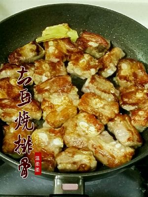 烧热平底锅,下少许油,下姜,将排骨两面煎香。