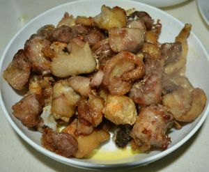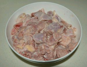 半只粮食鸡600g,斩成大小一致的块,洗净,滤干水分,加适量盐,料酒,淀粉,抓匀,码味30分钟。