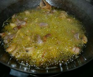 锅内热油,下鸡块炸5分钟左右,至肉成金黄色,捞起。