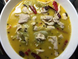 加肉片大火煮10分钟就可以出锅了,一般包心菜分开煮垫底是因为菜太吸油了,我就直接一起煮了,这样菜比较软,味道更好点。正常还应该有个后续步骤就是洒上花椒粉,最后浇上热油,我觉得还是少放点油就挺好,辣椒也没用太多所以也没那么红,还有就是因为酱油我没有加太多,辣椒酱是之前自己做的。
