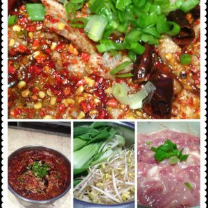 在锅内放油烧热后放入葱,姜,红辣椒炒香后倒入郫县豆瓣酱,翻炒一会出红油以后倒入开水,开水煮沸以后将肉片一片片下入,待肉片熟后倒在煮好的菜上