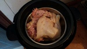 鸡放锅里煮30分钟(我的鸡有点大我就用了半只)放葱,姜,花椒,料酒,八角,香叶,桂皮