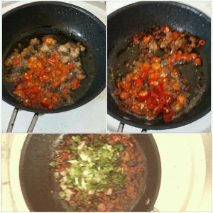 之前片出来的鸡油炼化,放辣椒,炒出香味辣味。把香菜梗葱白放入,翻两下就关火了,炒太熟没味道。(其实这个步骤不用也行,生拌鸡肉也香,就是我家人口挑,不肯吃生的)