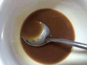 准备糖醋汁:白糖2大勺、醋1大勺、生抽1勺、几滴老抽、蚝油一小勺、适量淀粉加入兑成调味汁