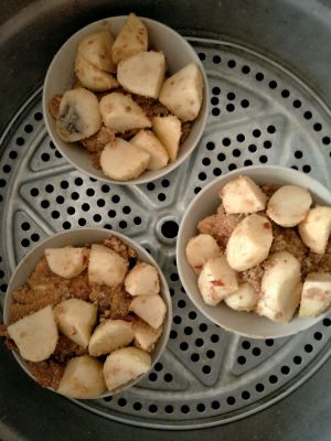 上蒸锅蒸四十分钟到一个小时左右,尽量蒸的软糯更好吃一些哦!