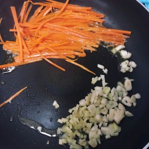 姜蒜下锅爆香,然后下胡萝卜翻炒