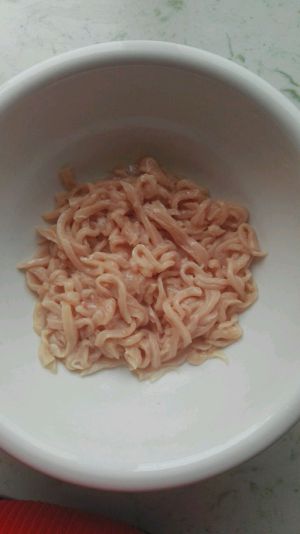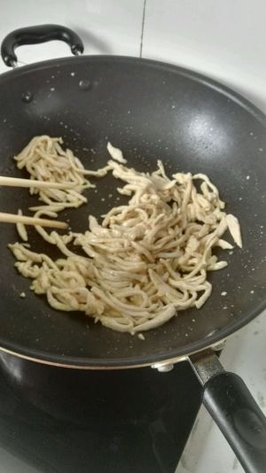 鸡肉切丝,放入淀粉加一点点盐腌制!