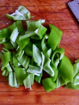 青椒切滚刀块、这个青椒不辣、我放了两个