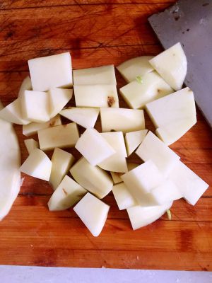 把土豆切块,切的块要大一点,切小一点会融化在肉汁里
