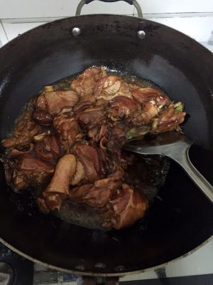 翻炒一会揽下油、揽过油的鸡肉不肥腻更好吃、让糖色均匀的包裹在每一块鸡肉上、