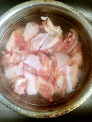 葱切段、姜切片、焯水和炒的时候都需要用到、还有蒜去皮洗干净备用、忘记拍了…