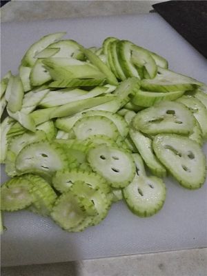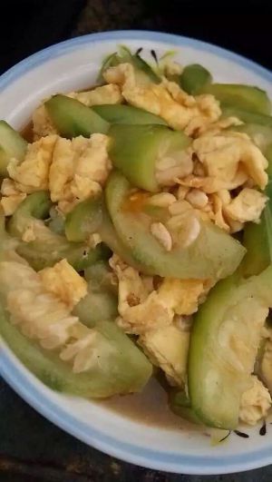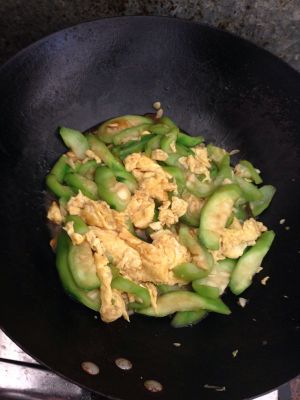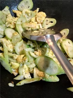 鸡蛋盛出,少许油,倒入丝瓜,翻炒5成熟,加入鸡蛋,调味料