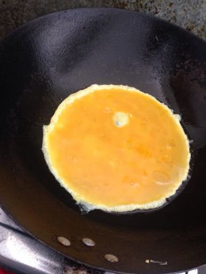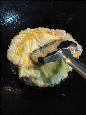 锅内倒入适量油,倒入鸡蛋,炒熟