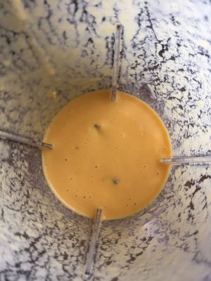 切碎芒果成泥,最好能搅拌机搅拌,效果会更好