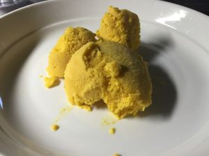 冷藏好的混合液倒入冰淇淋碗搅拌10分钟以上,这时候还是会比较稀,然后将碗放到冷冻室冰冻一小时再拿出来搅拌5分钟,重复以上步骤几次,后面搅拌几下就行了,具体看凝固成什么样再决定,最后多冻一会芒果冰淇淋就做好了,300g四球的材料成本是19元。