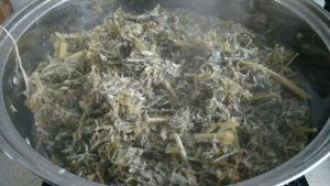 取出把汁和瑶柱倒入锅中烧开