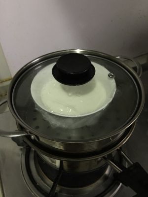 倒入蒸碗,盖上盖子或者扣个小盘子防水蒸汽,冷水入蒸锅,水开后立即转中小火,蒸约10分钟。 做双皮奶,火候一定要把握好,不能太高。如果温度太高牛奶里就会产生气泡,口感就不够细腻啦。